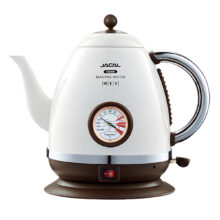 دسته این کتری از جنس آلیاژ آلومینیوم ساخته شده است که علاوه بر استحکام بالا، حمل و نقل آن را آسان و ایمن میکند. سیستم خاموشی خودکار: این کتری مجهز به سیستم خاموشی خودکار است که پس از رسیدن آب به نقطه جوش، به طور خودکار خاموش میشود. این ویژگی ایمنی دستگاه را افزایش میدهد و از سوختن کتری جلوگیری میکند. حالت حفظ دمای آب (۵۵ درجه سانتیگراد): این کتری دارای قابلیت حفظ دمای آب روی ۵۵ درجه سانتیگراد است که برای مواقعی که نیاز به آب گرم (نه جوش) دارید، بسیار کاربردی است. پایه چرخان ۳۶۰ درجه: پایه این کتری به راحتی میچرخد و استفاده از آن را روی میز یا کابینت آسان میکند. نکات مهم هنگام استفاده: از پر کردن کتری بیش از حد مجاز خودداری کنید تا از سرریز شدن آب داغ جلوگیری شود. به طور منظم دماسنج عقربهای را بررسی کنید تا از عملکرد صحیح آن اطمینان حاصل کنید. از تماس دست با بدنه کتری هنگام کار کردن خودداری کنید، زیرا ممکن است داغ باشد. کتري برقي JACAL با طراحی زیبا، عملکرد سریع و امکانات پیشرفتهای مانند دماسنج عقربهای و حالت حفظ دما، گزینهای ایدهآل برای کسانی است که به دنبال یک کتری بادوام و کاربردی هستند.