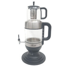سماور برقی مدل «TS-810» از محصولات شرکت «فلر» (Feller) است. با این سماور بهراحتی میتوان چای یا دمنوش موردعلاقهی خود را تهیه کرد و برای مدتی طولانی گرم نگهداشت. در جنس بدنه و قطعات این محصول، دقت زیادی شده است. دستگاه به واسطهی دستگیرههای عایق و پلاستیکی بهراحتی قابلاستفاده است. قسمت فوقانی یا اصلی بدنهی سماور و در آن بهمنظور حفظ کیفیت و انتقال هرچهبهتر گرما از جنس استیل ضدزنگ است. روکش المنت هم یکدست و از جنس استیل ضدزنگ است و مصرفکننده بهراحتی میتواند به شستوشوی آن بپردازد. استفاده از شیشه و استیل ضدزنگ در بدنهی سماور نهتنها به زیبایی آن میافزاید؛ بلکه این امکان را میسر میسازد تا کاربر بهراحتی میزان آب موجود داخل سماور را مشاهده کند. قوری سماور برقی فلر مدل -TS 810 هم از ظرفیت مناسبی بهره میبرد و از جنس شیشهی مقاوم در برابر حرارت است که با توجه به فیلتر توری استیل، کیفیت و ماندگاری قابلقبولی دارد. درپوش سماور هم بهگونهای طراحی شده که زمان قرارگیری قوری روی آن، مسیر انتقال بخار باز شده و قوری به بهترین شکل گرم نگه داشته میشود. استفاده از دستگاه فوقالعاده ساده بوده و برای روشنشدن کافی است کلید پشت آن را فشرده و حالات جوشاندن آب سماور یا گرمنگهدارنده را از طریق دکمهی تعبیهشده روی دسته انتخاب کنید. بدنه این دستگاه سفید بوده و نوارهایی در بالا و پایین محفظه شیشه ای سماور با تنوع رنگی ارائه می شود که می تواند رنگ های قرمز، آبی و نقره ای باشد.