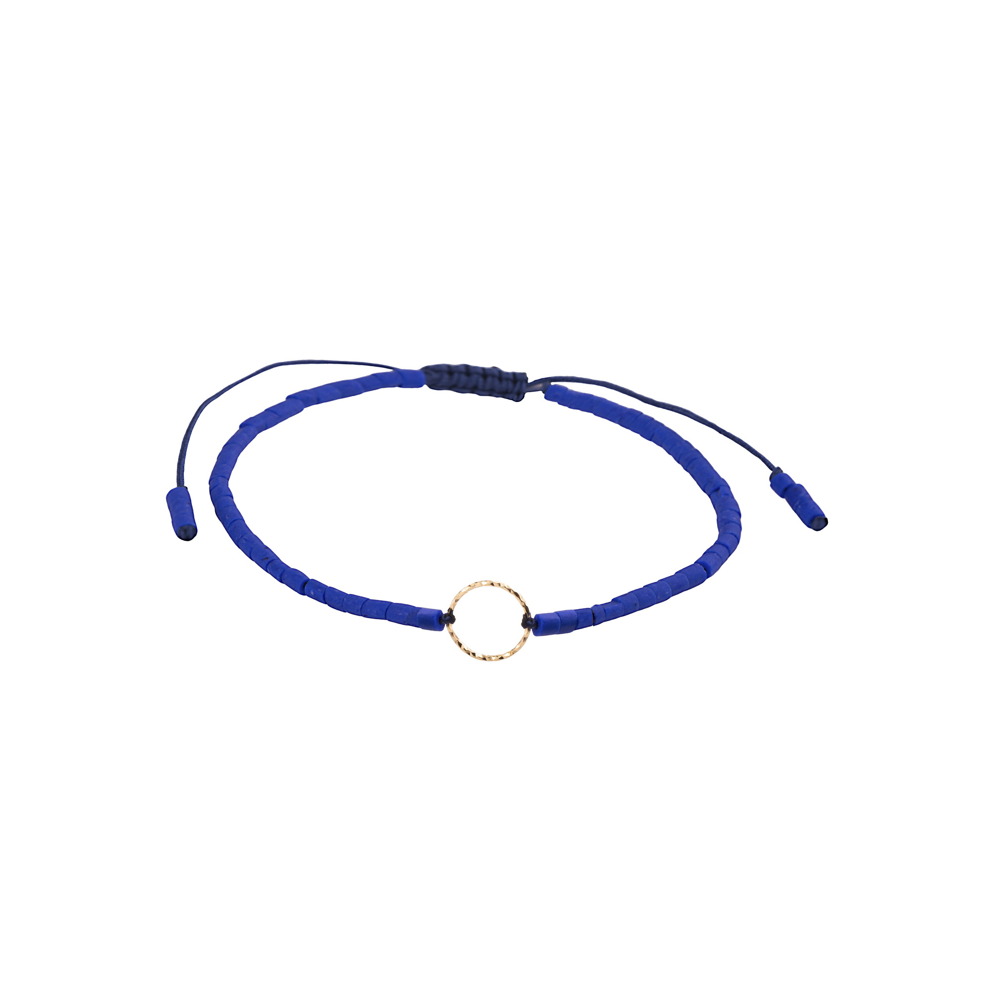 دستبند طلا 18 عیار زنانه گالری شیدا مجد مدل حلقه تراش حدید رنگ آبی کاربنی